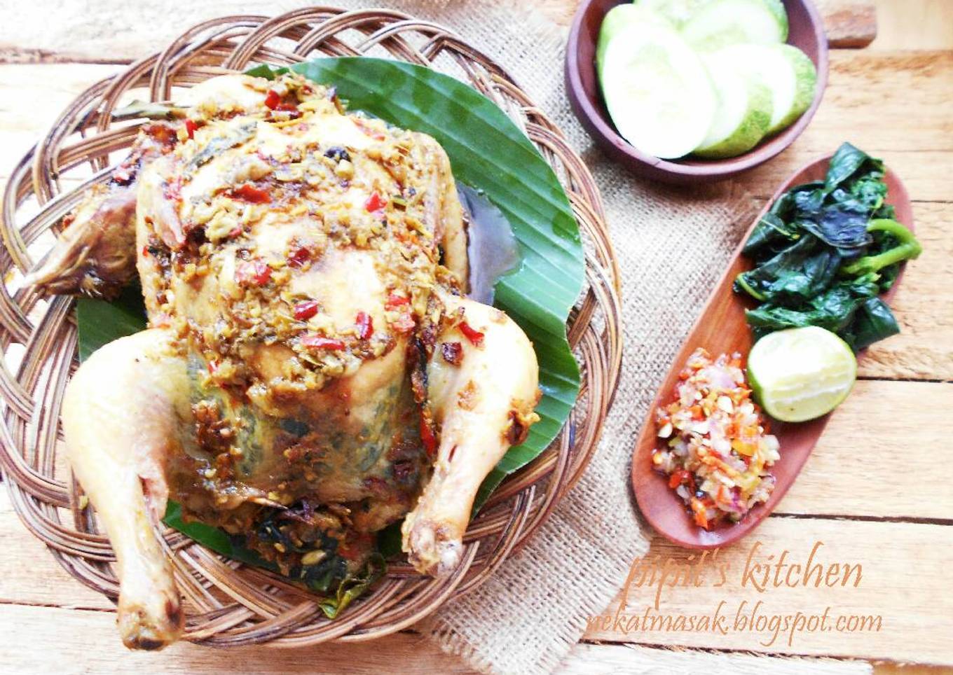 10. Panggang ayam dengan suhu 180 derajat selama 1-1,5 jam,kemudian lepaskan daun pisang yang sudang mengering itu,lalu lanjutkan memanggang hingga permukaan kulit ayam mengering,siap disajikan dengan sambal matah atau plecing kangkung